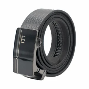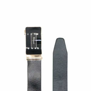 کمربند مردانه چرم مشکی با سگک ریلی طلایی