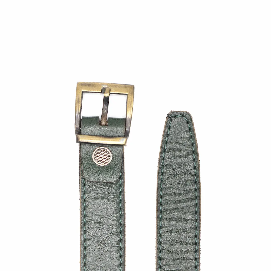 استفاده از چرم طبیعی گاومیش در کمربند چرم زنانه دوردوخت سبز