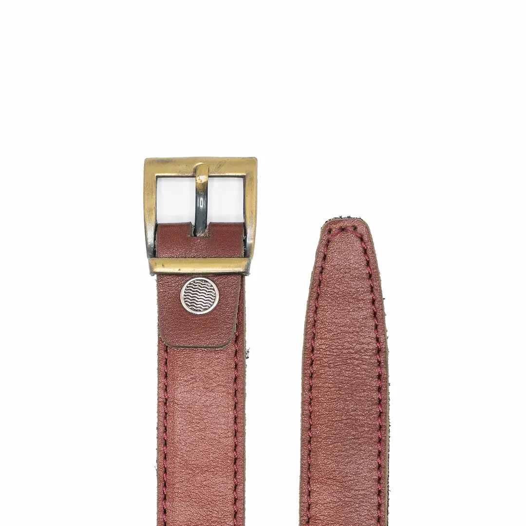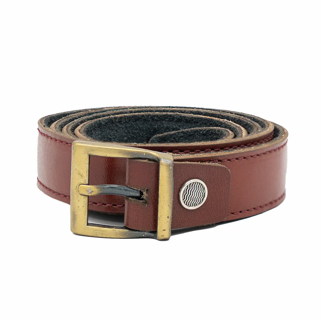 کمربند چرم زنانه دوردوخت عنابی | ظرافت و اصالت در استایل بانوان