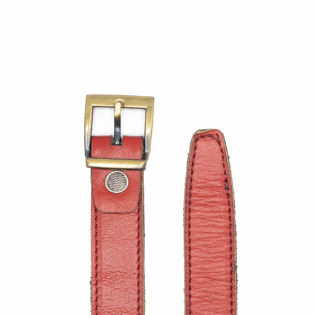 کمربند چرم زنانه دوردوخت قرمز | انتخابی جسورانه برای استایل خاص