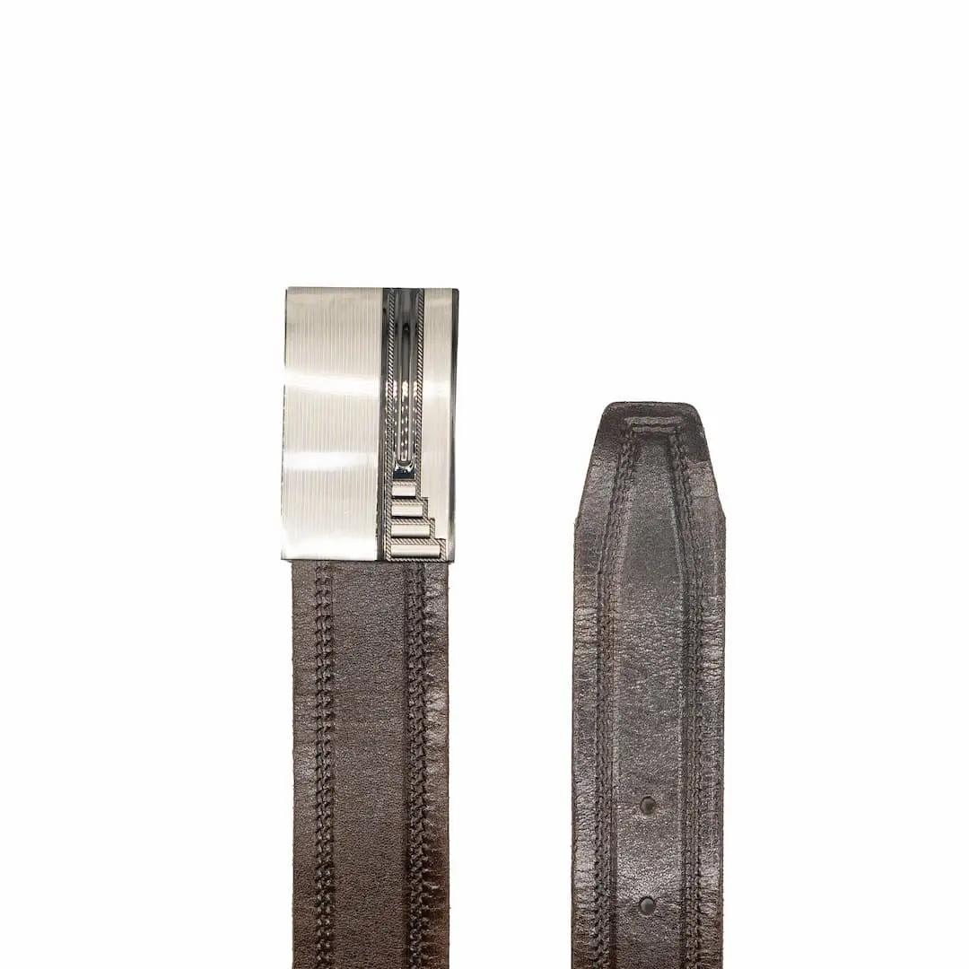 رنگ قهوهای در کنار سگک فلزی کلاسیک، ظاهری شیک و حرفهای ایجاد کرده که میتواند مکمل خوبی برای انواع شلوارهای مردانه باشد.